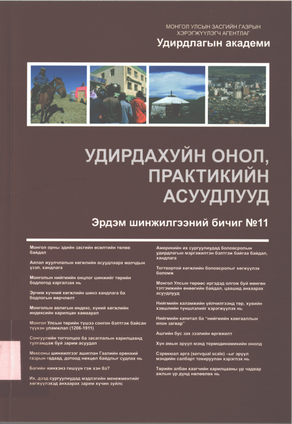 Удирдлагын академи, Батсүх Ш, Цэрэндорж Д, Шуурав Я and Отгонтуяа Л. Удирдахуйн онол, практикийн асуудлууд. УБ: . 2012.