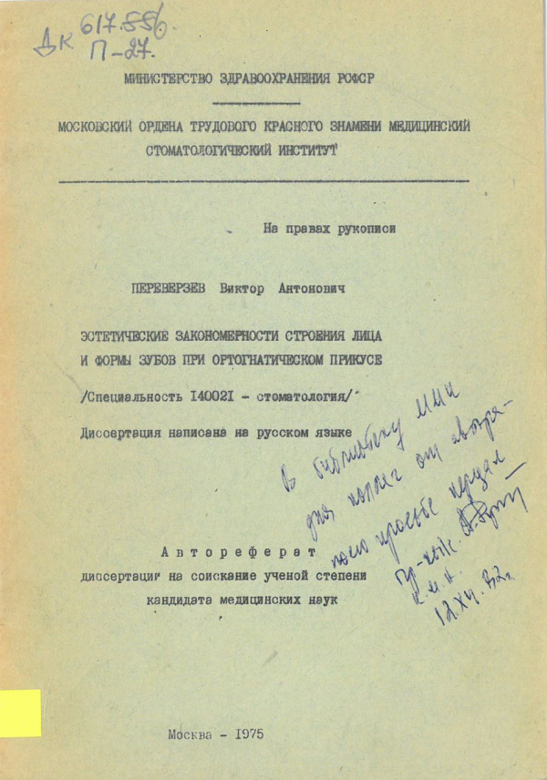 (Министерство Здравоохранения РСФСР, Московский Ордена Трудового Красного Знамени Медицинский Стоматологический Институт)