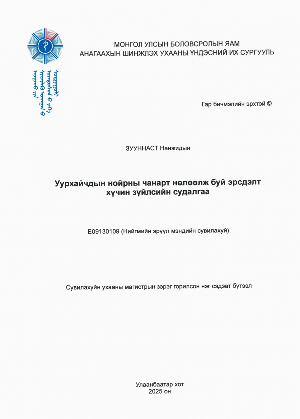 магистр магистрын зэрэг горилсон нэг сэдэвт бүтээл Анагаахын Шинжлэх Ухааны Үндэсний Их Сургууль 2025