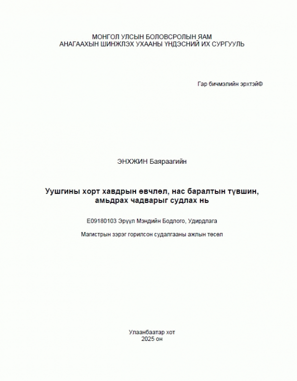 Online resources: Dissertation note: Диссертаци Магистр Анагаахын Шинжлэх Ухааны Үндэсний Их Сургууль 2025