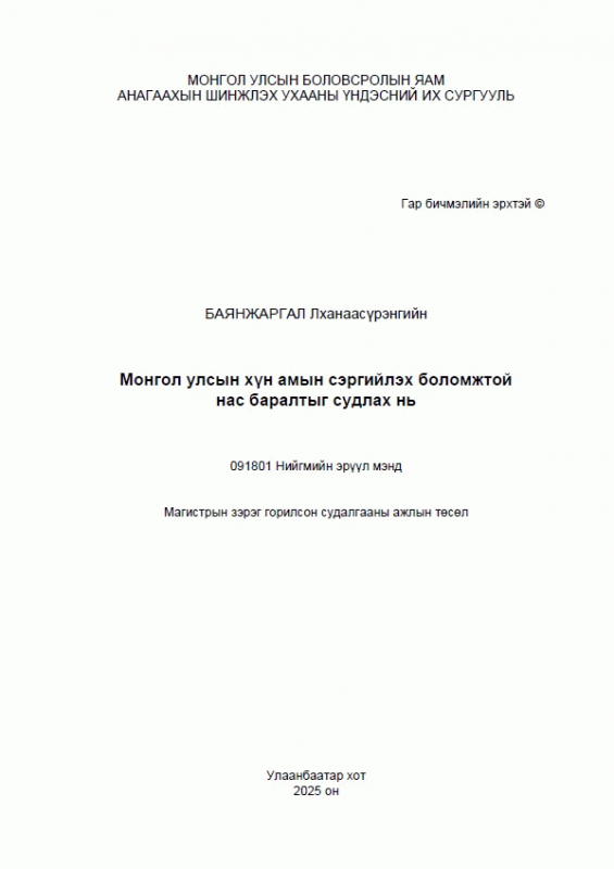 Баянжаргал Лханаасүрэнгийн, Даваа Г, Ундрам Л and Анагаахын Шинжлэх Ухааны Үндэсний Их Сургууль. Монгол улсын хүн амын сэргийлэх боломжтой нас баралтыг судлах нь. Улаанбаатар: [Хэвлэлийн газар тодорхойгүй]. 2025.