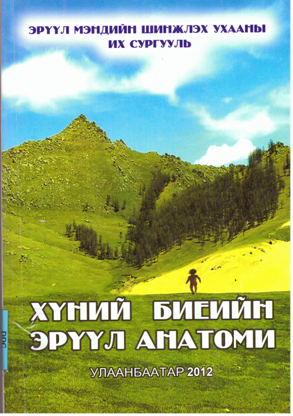 Хүний биеийн эрүүл анатоми / Зохиогч: Д. Амгаланбаатар, Б. Дагданбазар, С. Сүрхбаатар, Л. Аня, С. Энэбиш, С. Түндэврэнцэн, Н. Батсайхан, А. Авирмэд, Д. Уранчимэг, С. Удвал, Х. Пүрэвсүрэн, Д. Нямдорж, С. Энхбаатар, Б. Журамт, Д. Янсанжав, А. Долгорсүрэн, Э. Түмэнжин, Д. Нямсүрэндэжид, Г. Доржжагдаг, Н. Шижир Хянан тохиолдуулсан: Д. Амгаланбаатар, Б. Дагданбазар