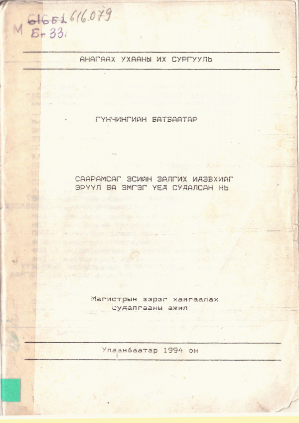 Магистр Магистрын зэрэг горилсон нэг сэдэвт бүтээлийн хураангуй Анагаах Ухааны Их Сургууль 1994