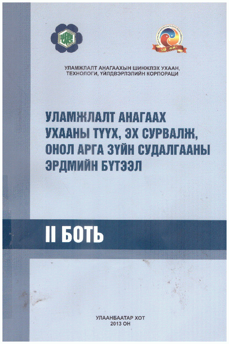 | Эрдэм шинжилгээний хурлын эмхтгэл | Эрдэм шинжилгээний номын сан Үндсэн фонд | 615.882'015 У-298 | Available | 2023.05 | 2024.06 | ATNS-M04902 | |