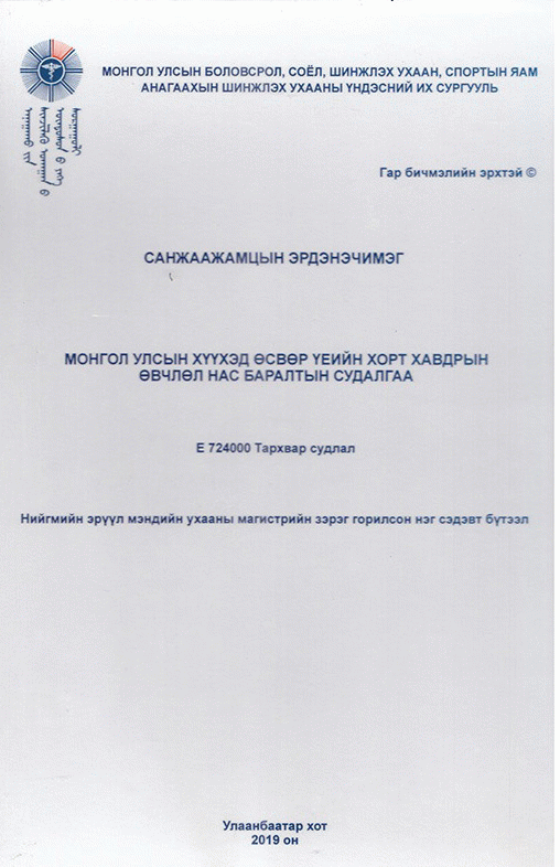 | Магистрын тезис | Эрдэм шинжилгээний номын сан Эрдэм шинжилгээний уншлагын танхим | 616.992 Э-739 | Available | 2020.08.28 | 2022.09 | 2023.09.18 | 2024.02.15 | ATNS-MT00997 |