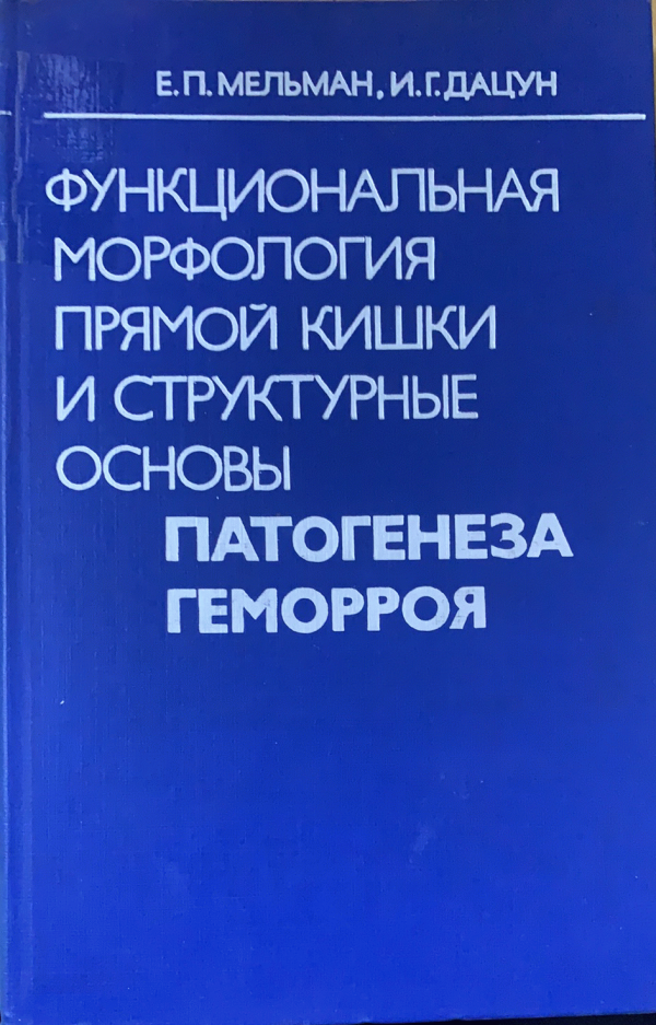 Мельман Е.П, Мельман Е.П and Дацун И.Г. Функциональная морфология прямой кишки и структурные основы патогенеза геморроя. М: Медицина. 1986.