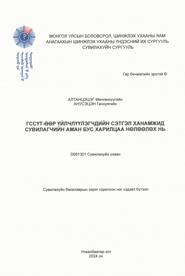 бакалавр бакалаврын зэрэг горилсон нэг сэдэвт бүтээл Анагаахын Шинжлэх Ухааны Үндэсний Их Сургууль 2024