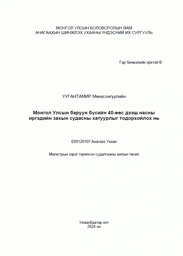 Dissertation note: Диссертаци Магистр Анагаахын Шинжлэх Ухааны Үндэсний Их Сургууль 2024