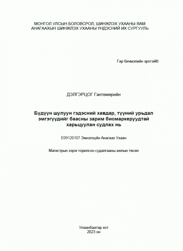 Dissertation note: Диссертаци Магистр Анагаахын Шинжлэх Ухааны Үндэсний Их Сургууль 2023