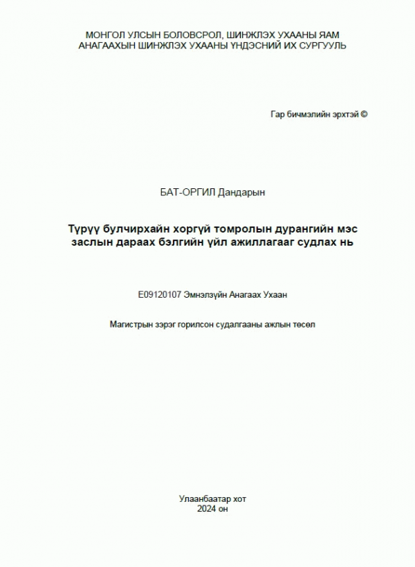 Диссертаци Магистр Анагаахын Шинжлэх Ухааны Үндэсний Их Сургууль 2024