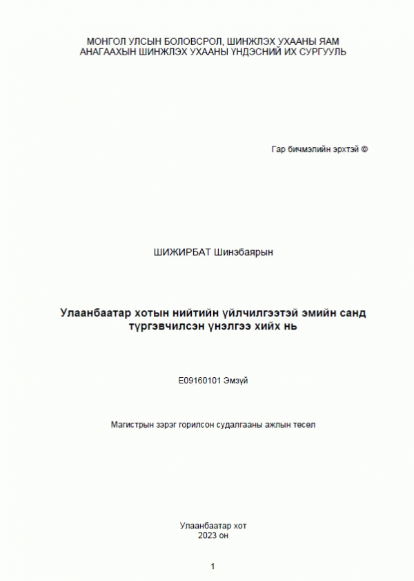 Диссертаци Магистр Анагаахын Шинжлэх Ухааны Үндэсний Их Сургууль 2023