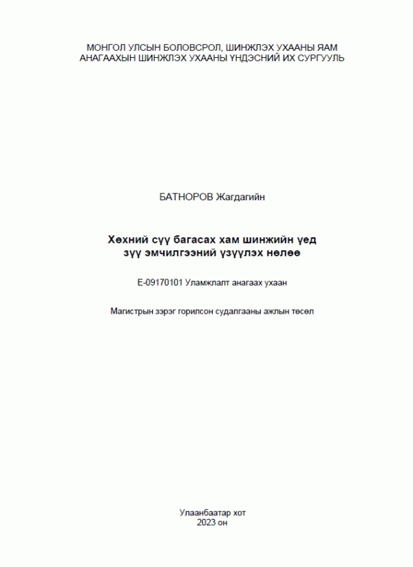 Dissertation note: Диссертаци Магистр Анагаахын Шинжлэх Ухааны Үндэсний Их Сургууль 2024