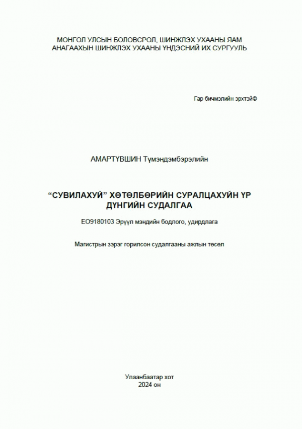 Диссертаци Магистр Анагаахын Шинжлэх Ухааны Үндэсний Их Сургууль 2024