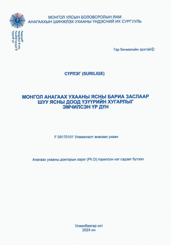Диссертаци Доктор (Ph.D) Анагаахын Шинжлэх Ухааны Үндэсний Их Сургууль 2024