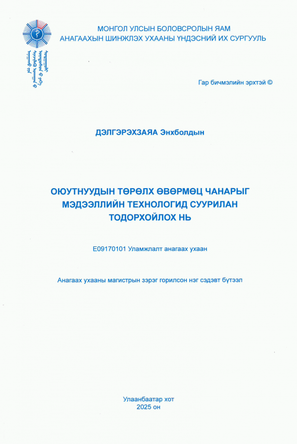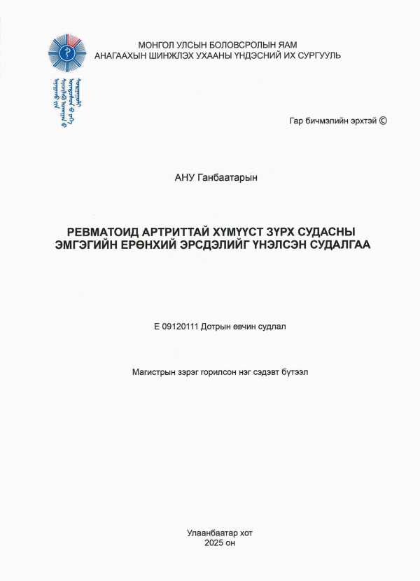 Dissertation note: доктор докторын зэрэг горилсон нэг сэдэвт бүтээл Анагаахын Шинжлэх Ухааны Үндэсний Их Сургууль 2024