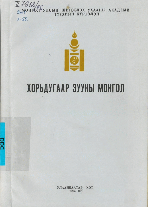 Publication details: УБ. : ШУА-ийн Эрдэм хэвлэх, 1994