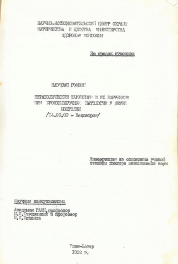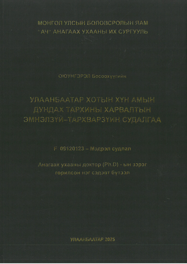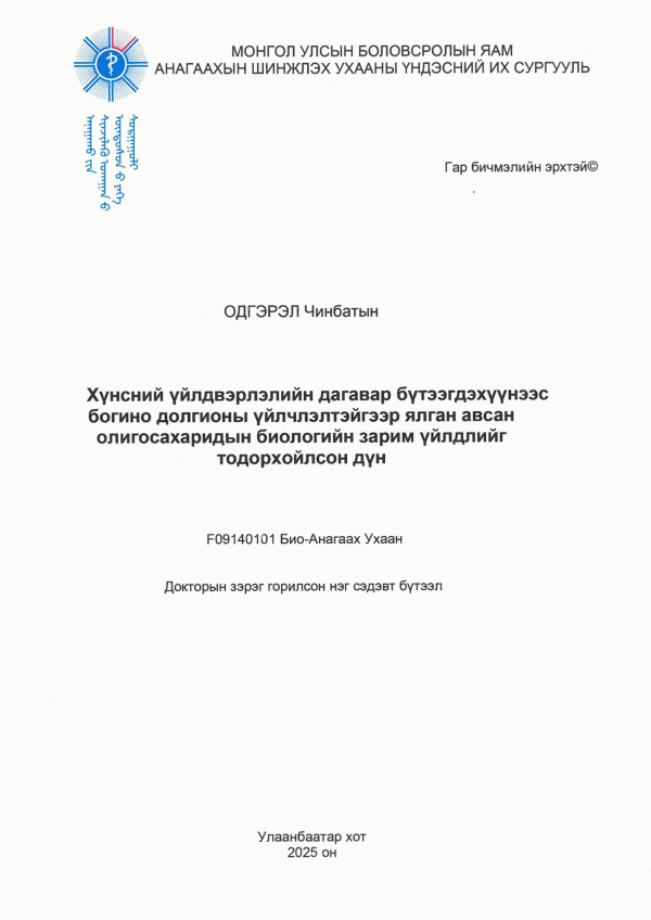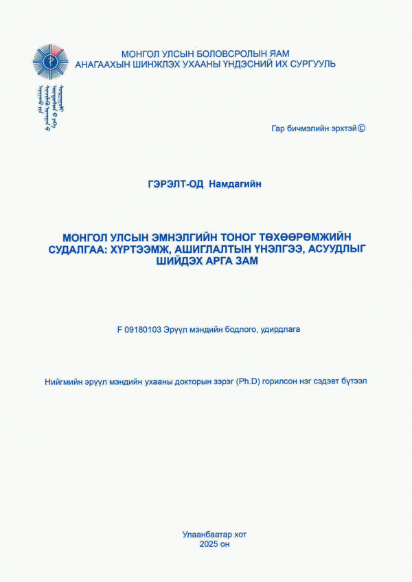 Dissertation note: Диссертаци Доктор (Ph.D) Анагаахын Шинжлэх Ухааны Үндэсний Их Сургууль 2025